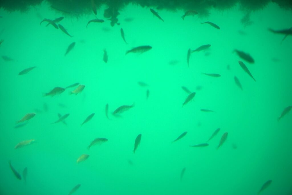 在船還未啟動前,水下呀,竟是那麼多小巧的魚兒,悠然地游來游去,可愛極了