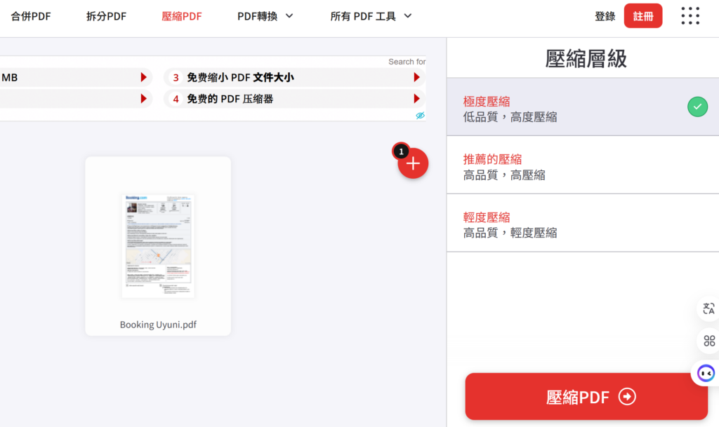 可以選擇壓縮的程度,建議選擇”極度壓縮”,讓檔案大小縮到 500KB以下