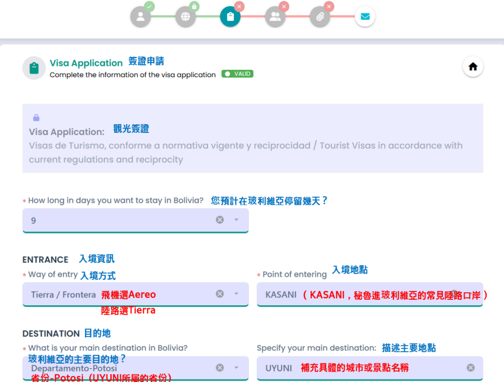 - 簽證入境期 (30天):這是指「簽證貼紙貼上去」後,通常必須在 30 天內 進入玻利維亞