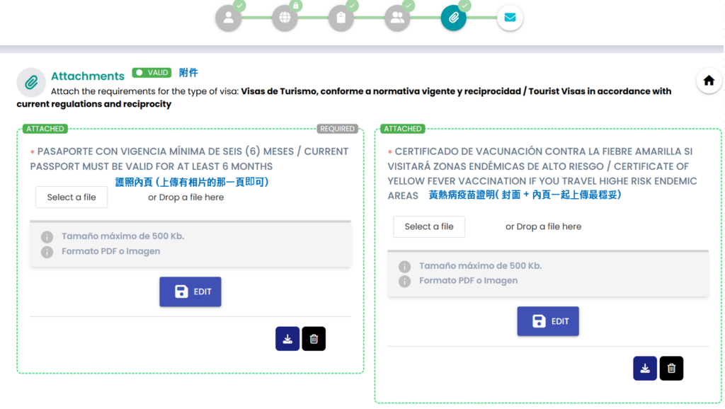| 黃熱病證明 | 內頁照片 (< 500kb) | 黃皮書正本 | 系統必傳,現場面試則視情況查驗 |