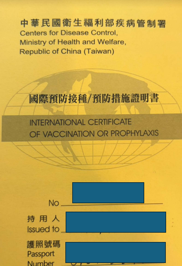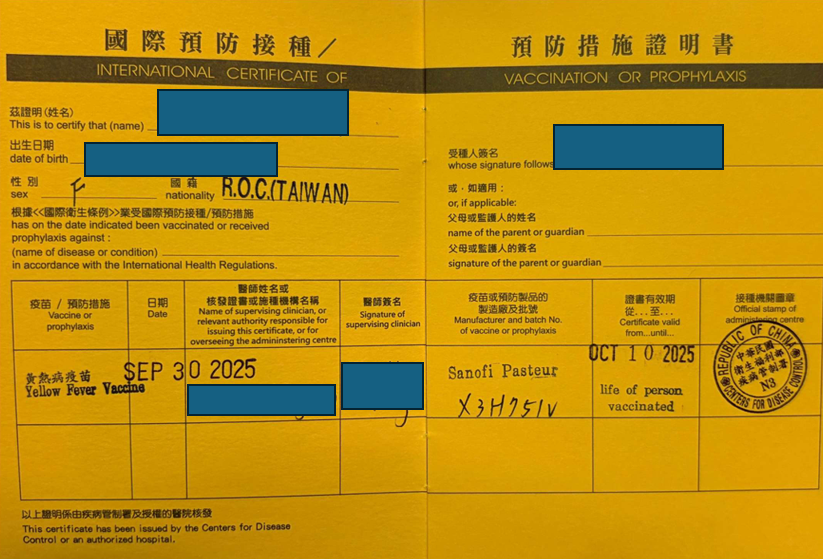 黃熱病疫苗證明範例 ( 封面 + 內頁一起上傳最穩妥)