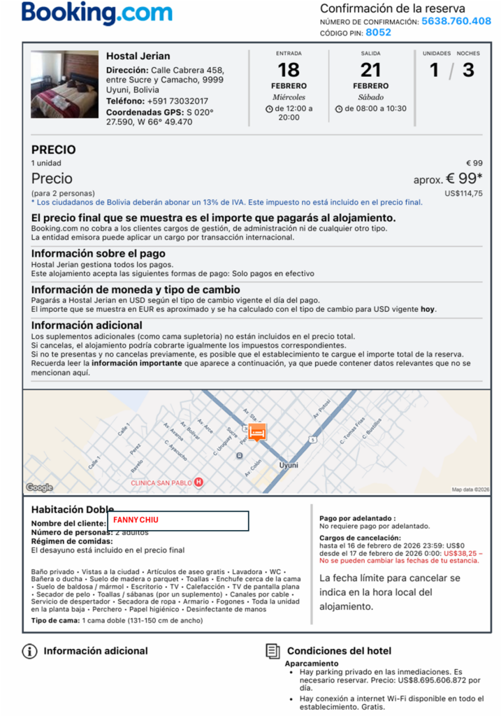 - 💵 兌換玻幣 (Bolivianos – Bs):建議在這裡換一點小錢,方便之後購買簡單飲食。