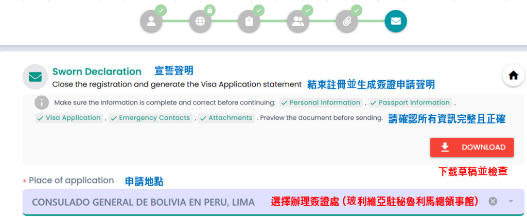 申請表 (Sworn Declaration),並在最後一頁親筆簽名