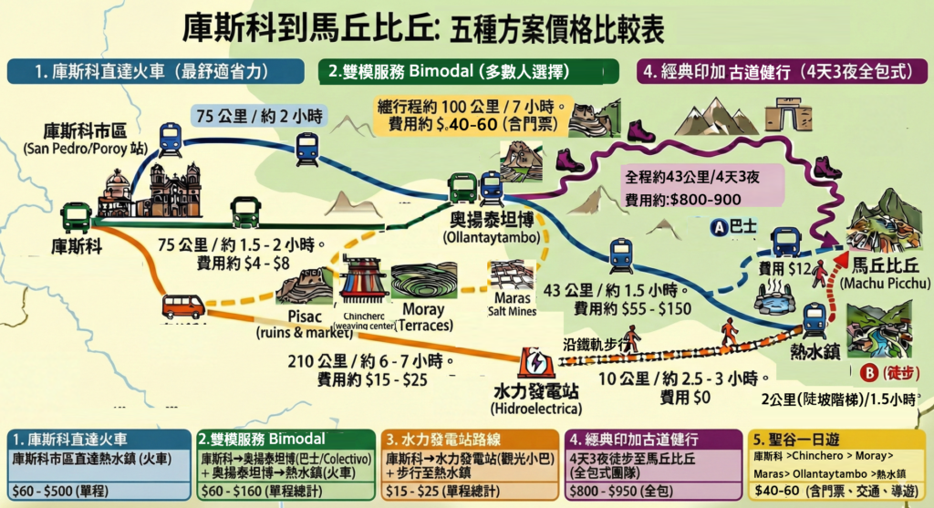 - ⚠️⚠️雨季重要變動 : 每年 1月至 4月期間,受雨季安全因素影響,庫斯科直達火車將全面停駛。屆時所有班次會強制改為「雙模服務 (Bimodal)」*