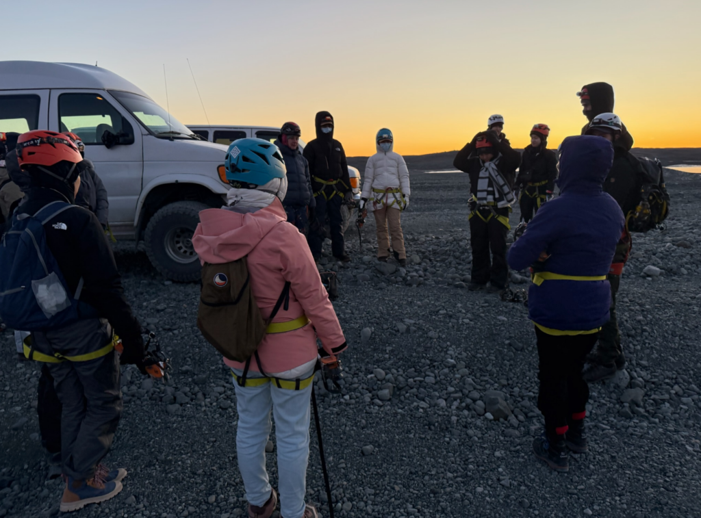 我們在 Breiðamerkursandur旁的停車場裝備好冰爪與安全繩