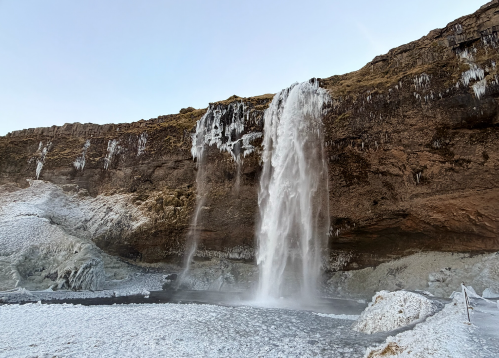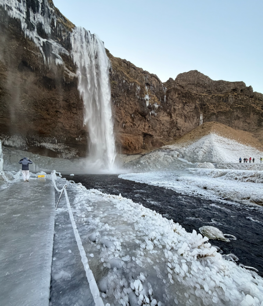 - Day 2:冰封南岸瀑布群 (South Coast) 瀑布週邊掛滿冰柱,黑白對比的地景極度冷艷
