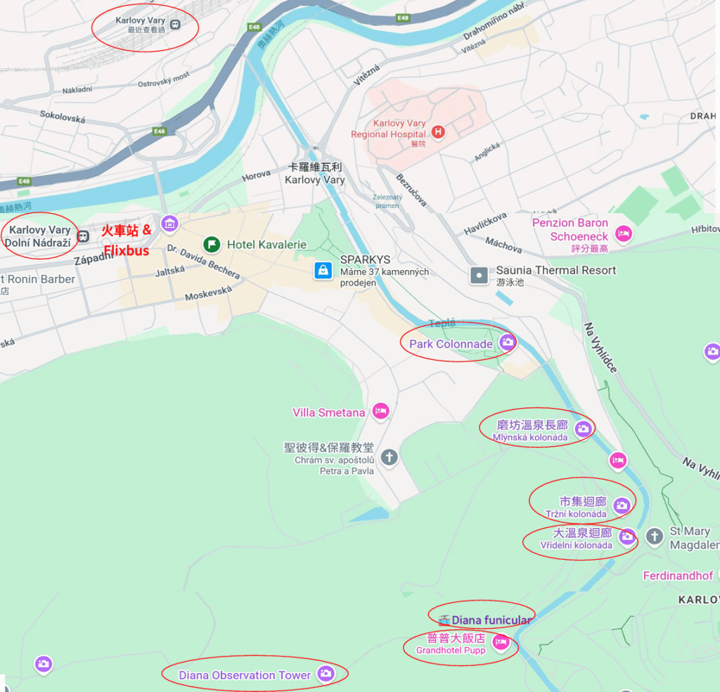 從Karlovy Vary Dolní Nádraží 走到普普飯店 約 2.5公里,來回 5公里