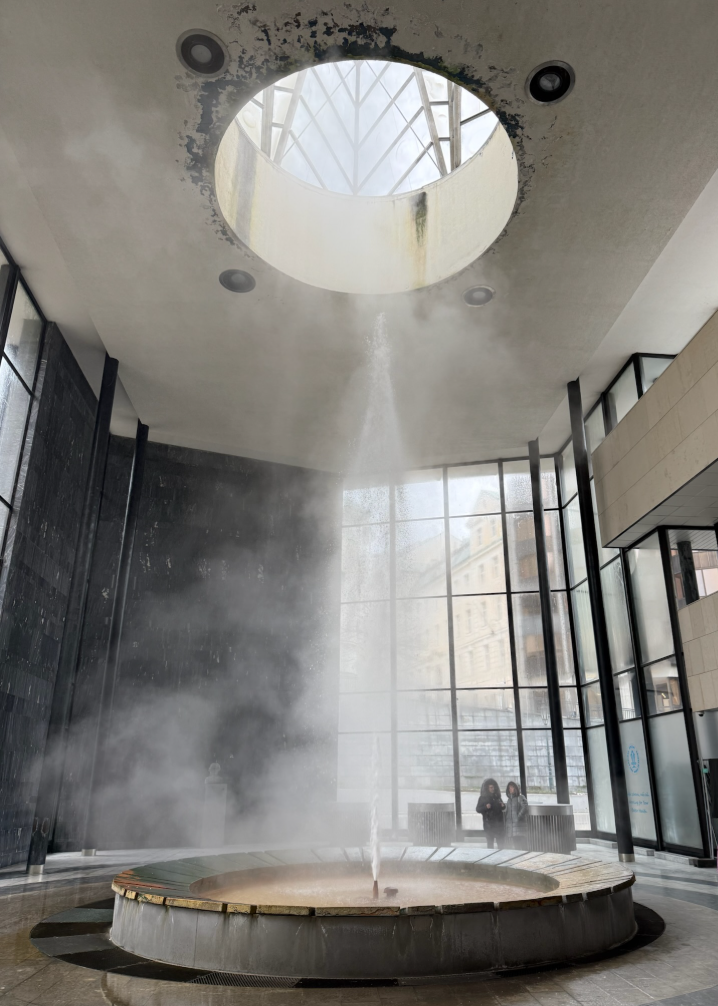 現代感十足的迴廊內部,可以看到 72℃的熱水帶著蒸汽,轟然噴射到 12 米高的空中