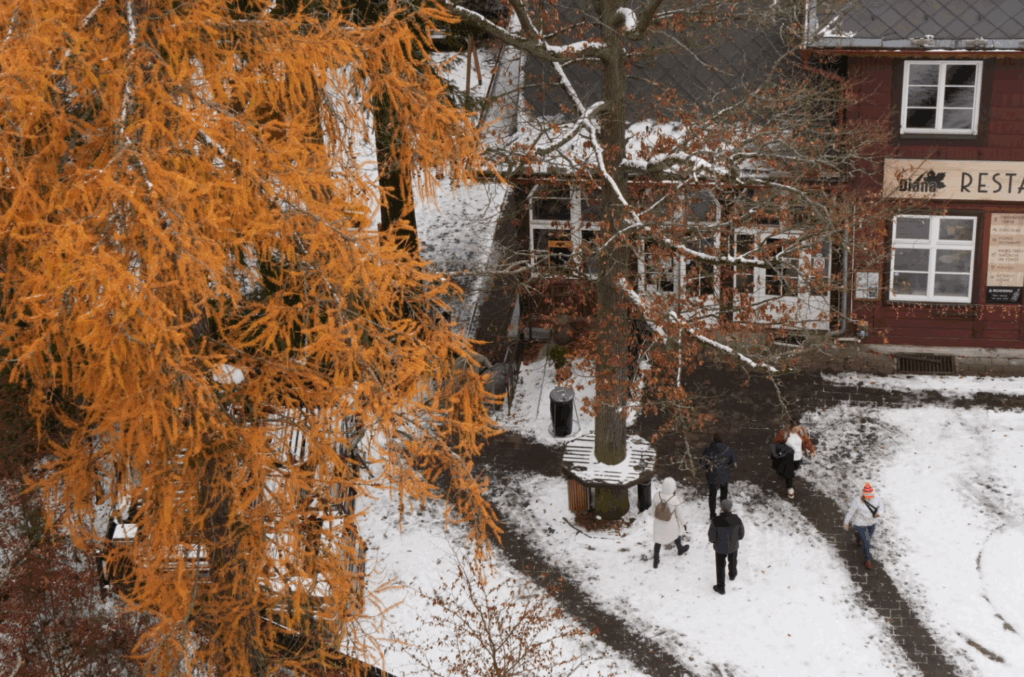 到達山頂的 戴安娜觀景塔 (Rozhledna Diana) 後,我們搭乘電梯上塔頂