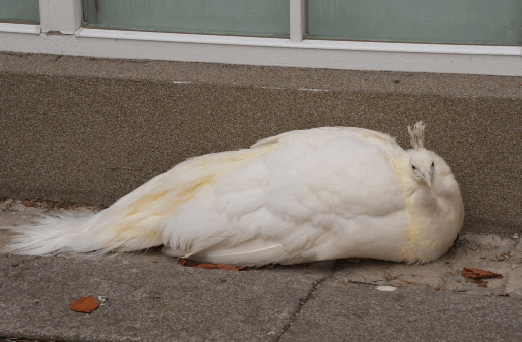 原本看到我走近,孔雀想走開,伸了伸爪子 ,可能是太冷又縮回去