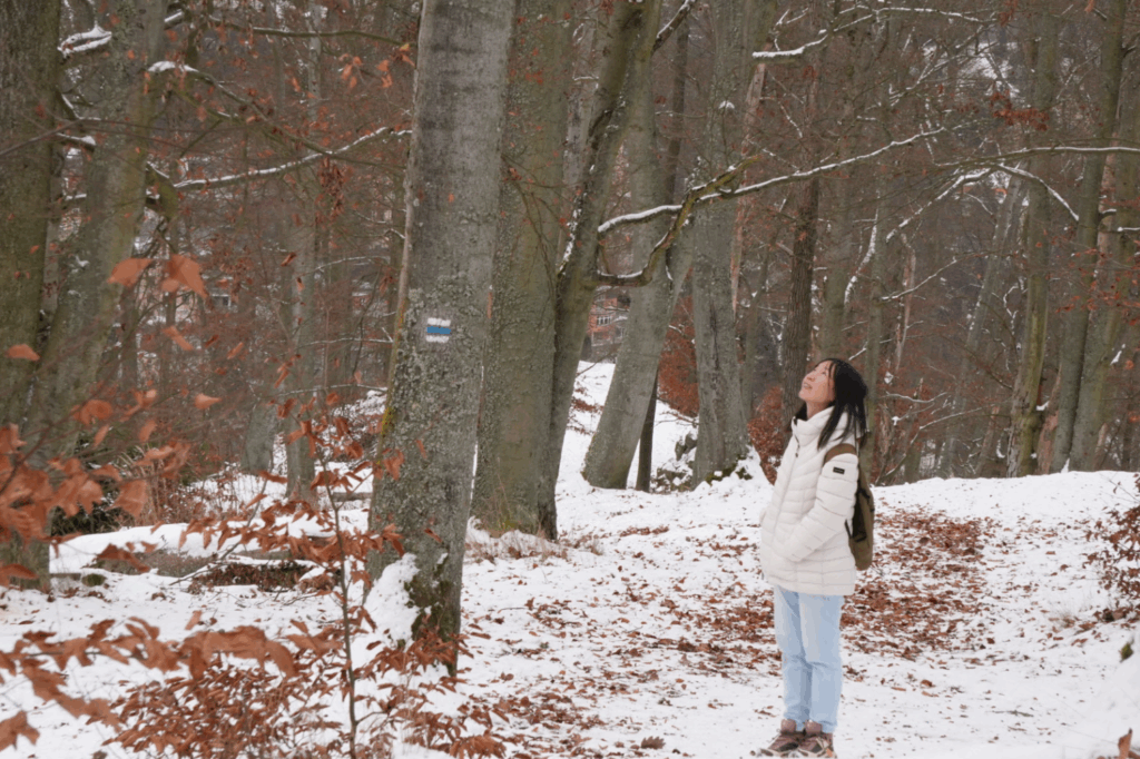 站在雪地的樹林裡,莫名就會想到冬季戀歌