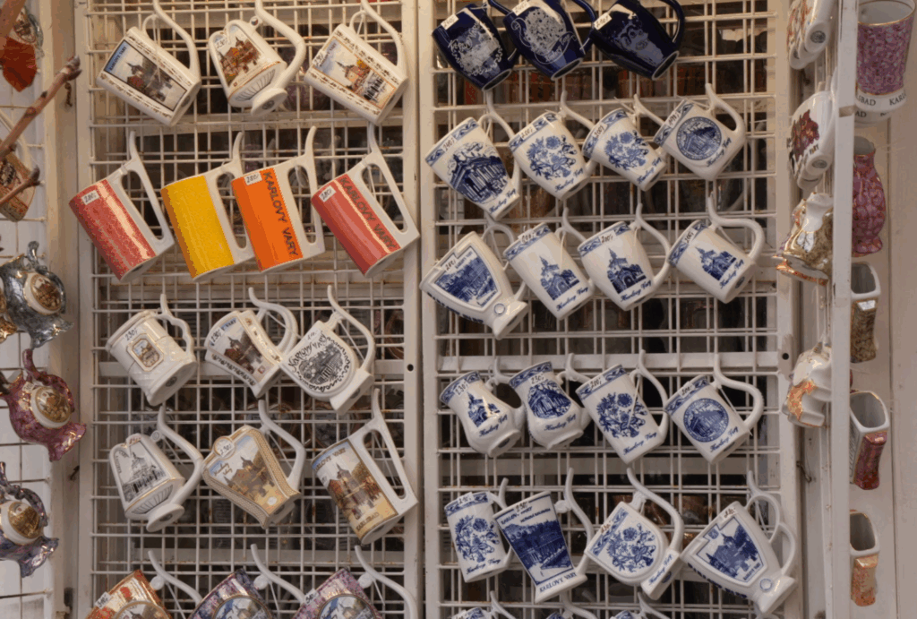 在卡羅維瓦利,觀光客的第一件事就是去買一個經典的溫泉杯(Vřídelní pohárek)。