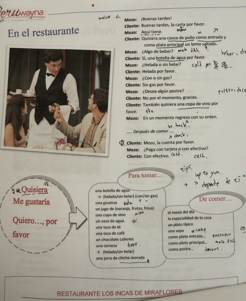 老師特別強調,秘魯人非常注重禮貌(Educación)。在這裡,每一段對話都應該以打招呼開始,並以謝謝結束: