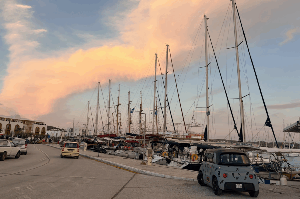 | 🛵 摩托車/機車 (Scooter) | 適合單人或情侶,喜歡穿梭在普拉卡小巷和漁村,追求機動性與速度感。 | 約 €20 – €35 | 騎著小機車,感覺自己就是電影裡那個無所畏懼、要去追逐日落的女主角。但請務必確認攜帶國際駕照&本國駕照正本,而且島上風大,注意安全。 |