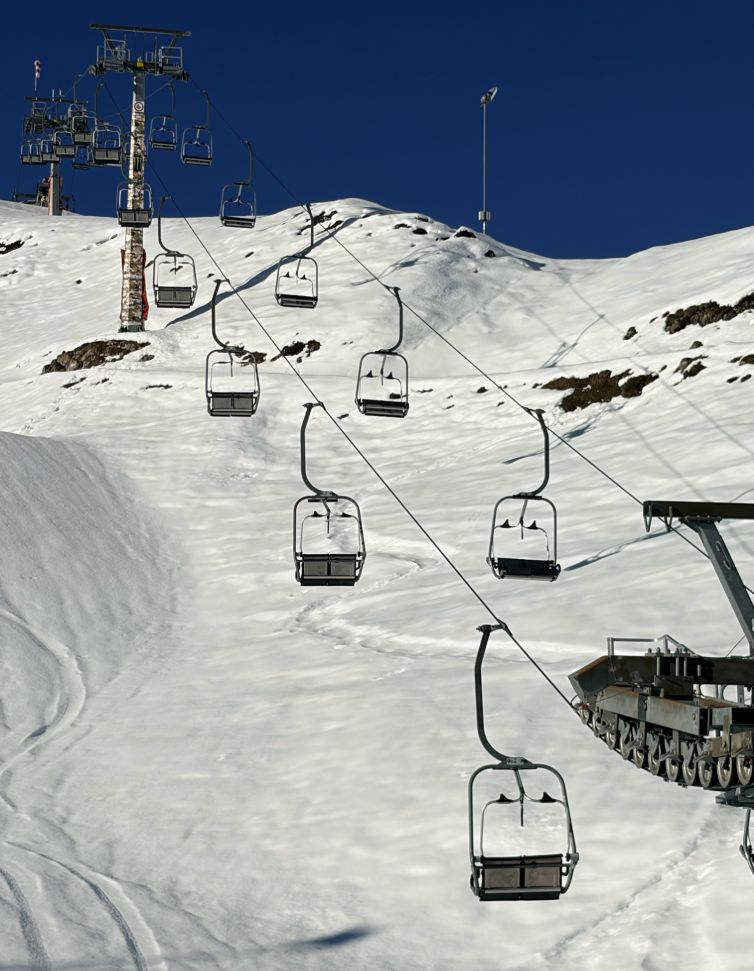 12月積雪的厚度不足以滑雪,滑雪吊椅還孤零零地停在半空中