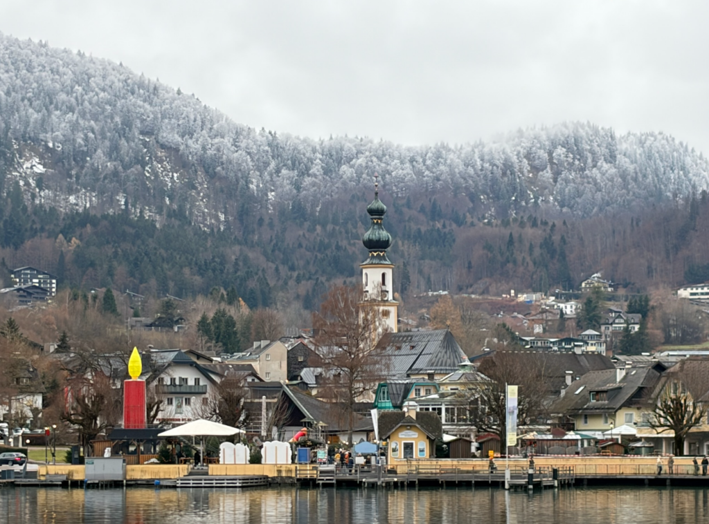 聖吉爾根依傍著一片寬闊的湖岸,可以看到教堂的尖塔和巨型蠟燭?! 充滿了節慶氣息