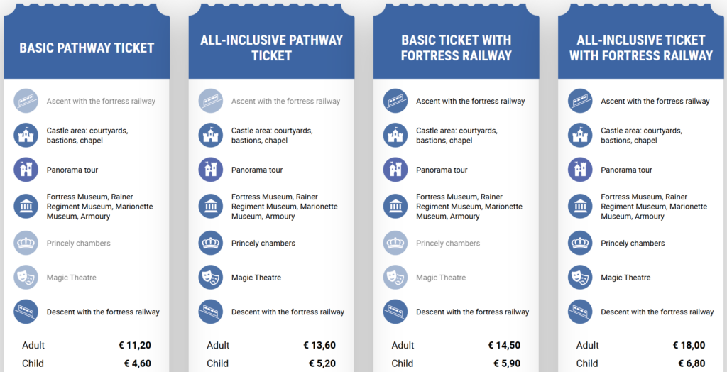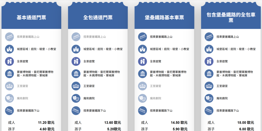 ❗要塞關門後才能單獨買纜車票,關門前都需要搭配城堡門票