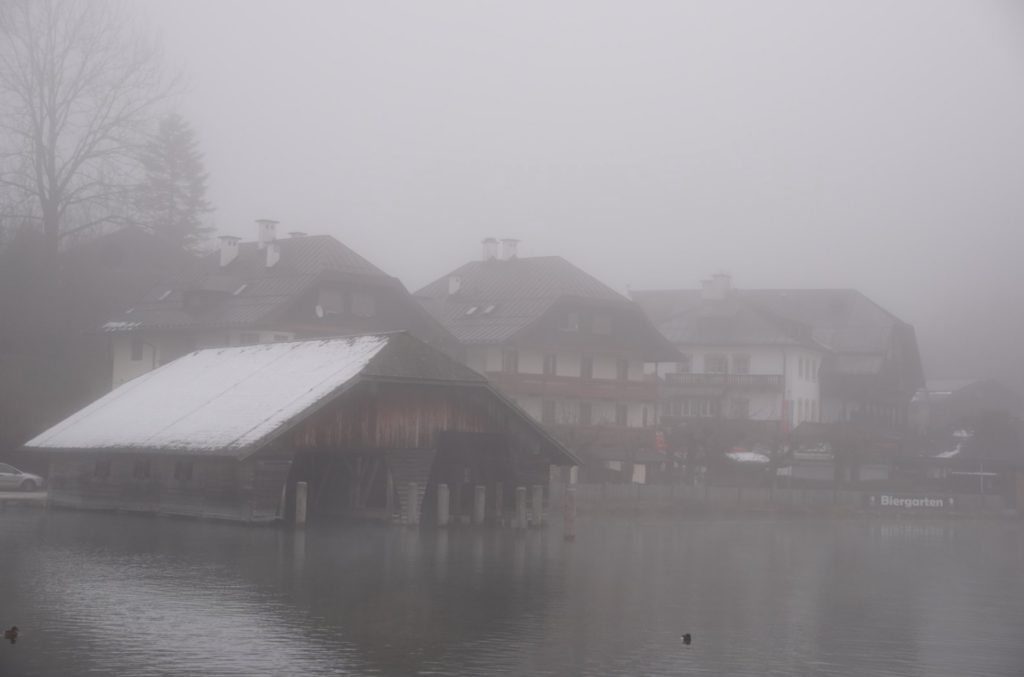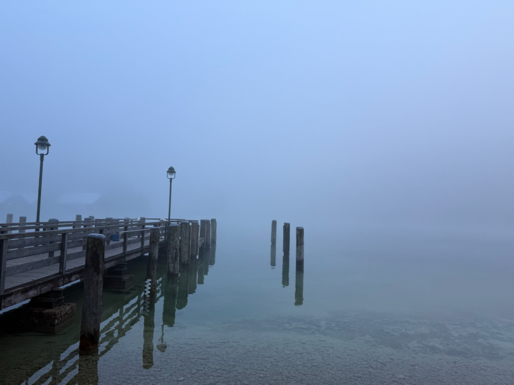 雖然天氣預報明明顯示大晴天,但我們抵達時,湖面卻被一層濃厚的霧氣籠罩