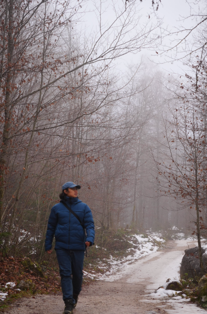 我們決定沿著湖邊悠閒漫步,耐心等待霧氣散開。