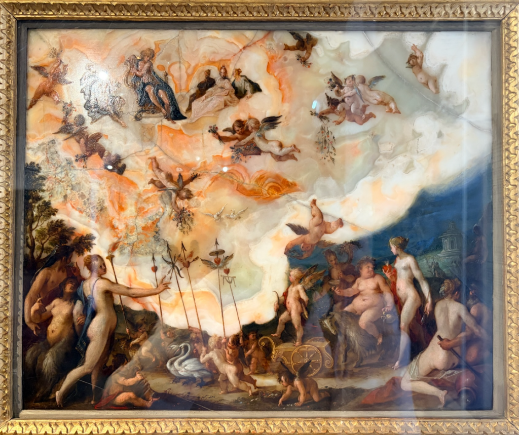 上方是天界眾神的聚會,下方則有充滿動感的林中仙子與邱比特
