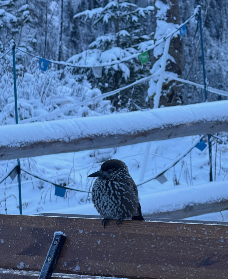 就在此時,幾隻星鴉(Northern Nutcracker)一步步輕盈地跳向我們