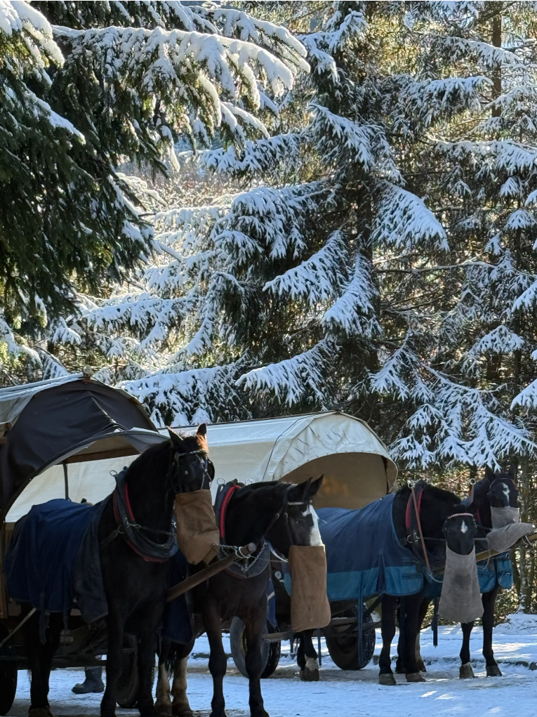 近午時分,我們在回程的路上遇見了今天第一批工作的馬車。