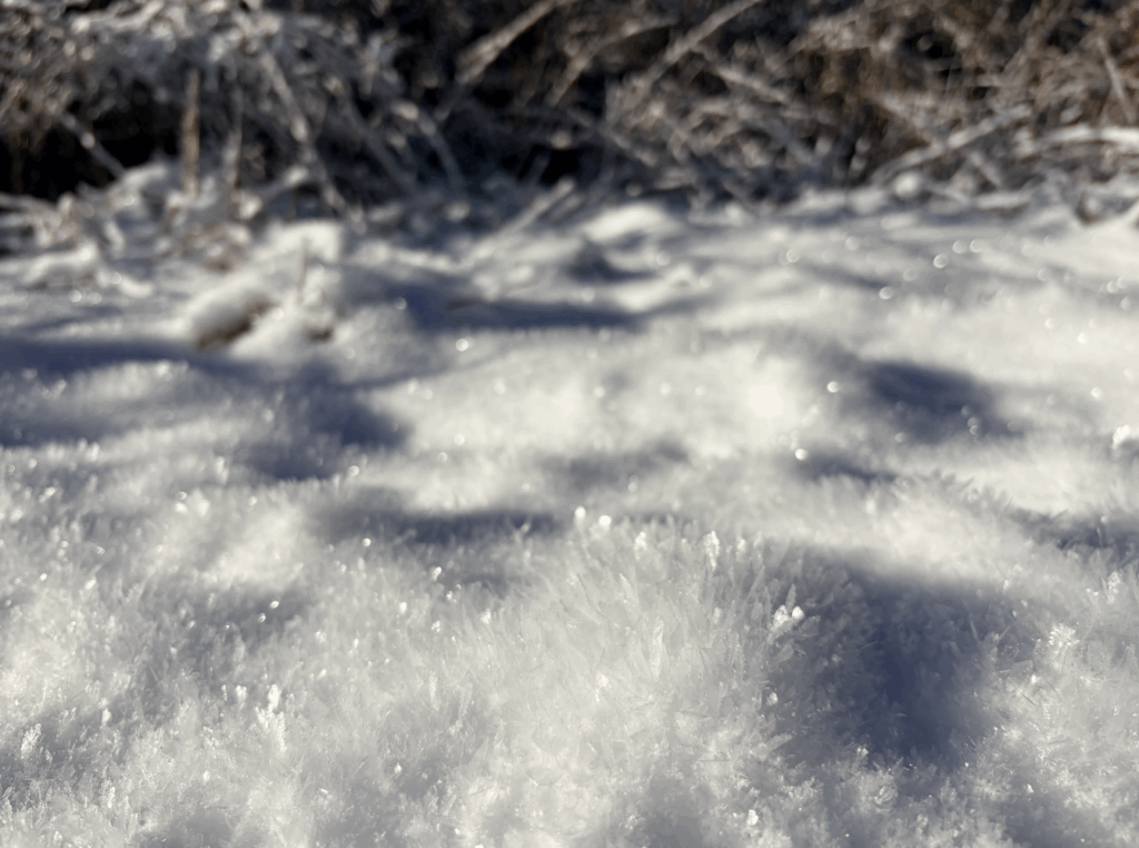 陽光下的雪,像水晶碎片毛茸茸地堆疊在一起