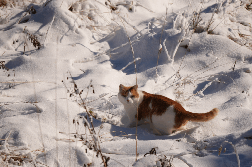 雪地裡的貓看起來特別靈動 (雖然牠有點胖)